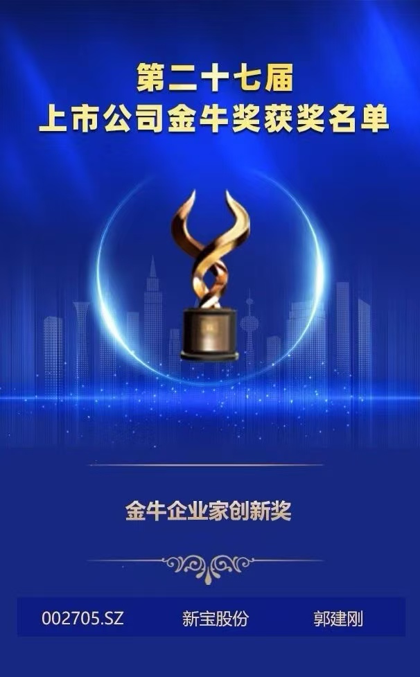 在此次评选中,,,,,,,,公司董事长郭建刚先生荣获2024年度“金牛企业家立异奖”。。。 。。。 。